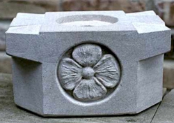 holes in the letters are where bronze letters were attached