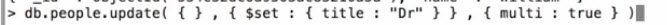 `db.scores.update( { 'score' : { $lt : 70 }}, {$inc : {score : 20}}, {multi:true})