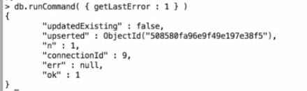 db.runCommmand( { getLastError : 1 })