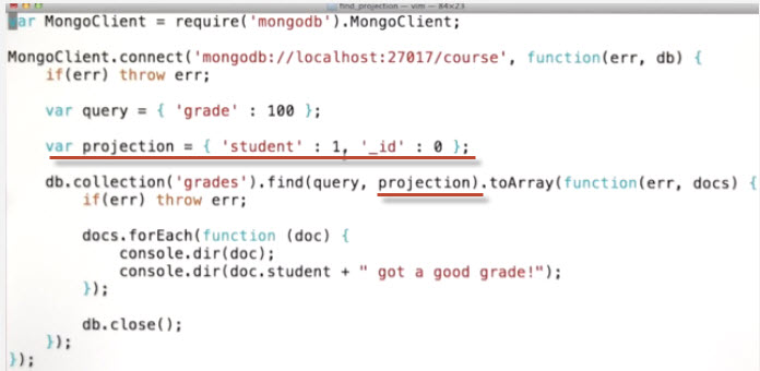find using field projection
