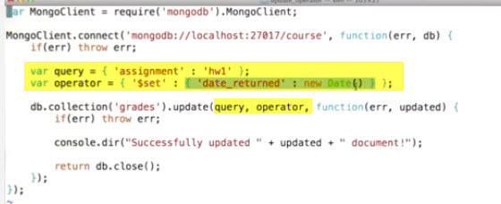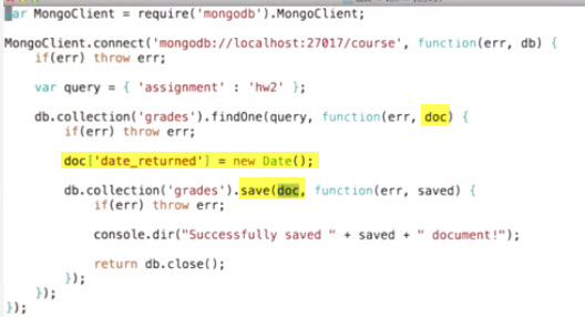 to update you need to get the document you want, change it, and then update it
